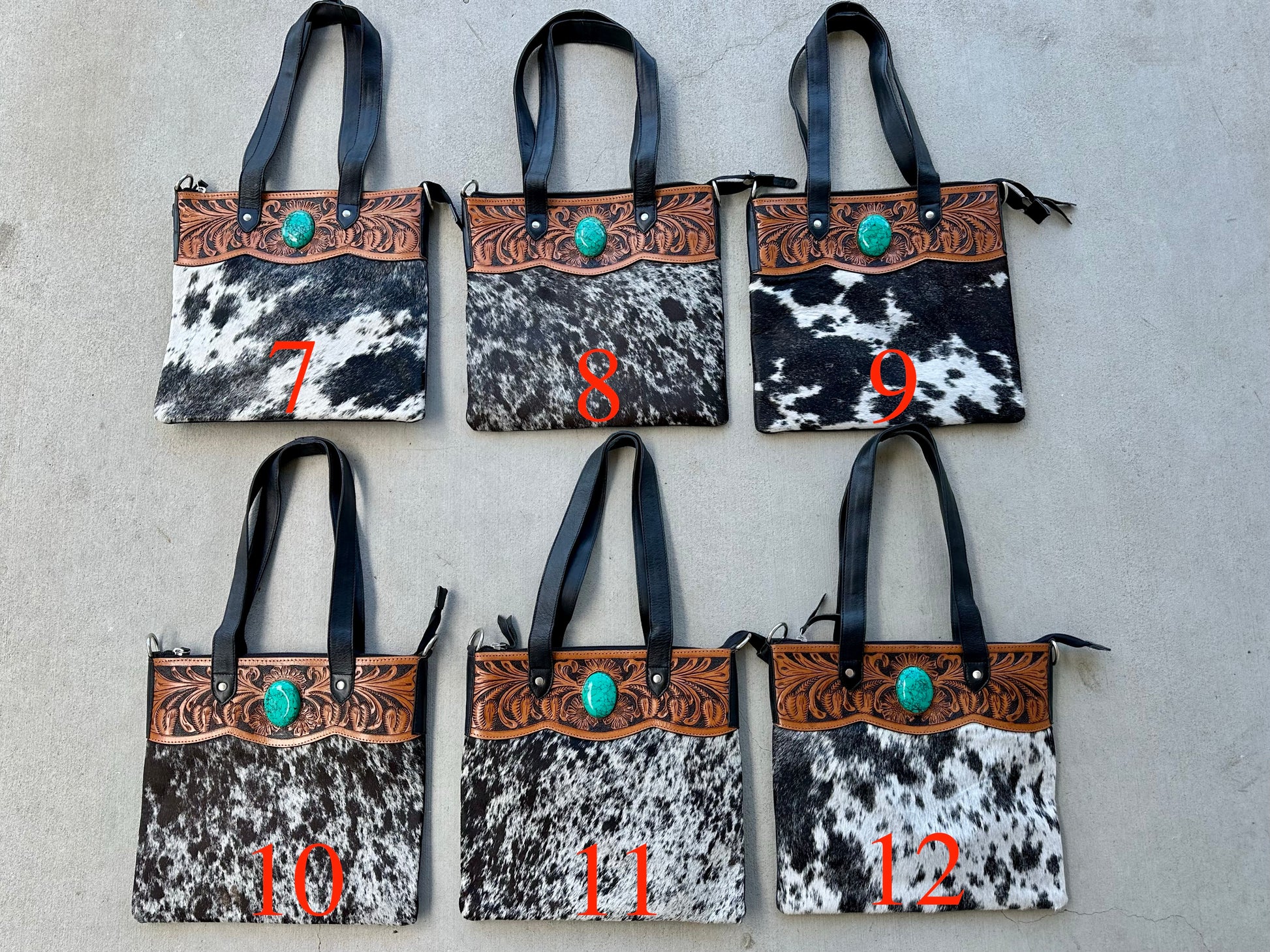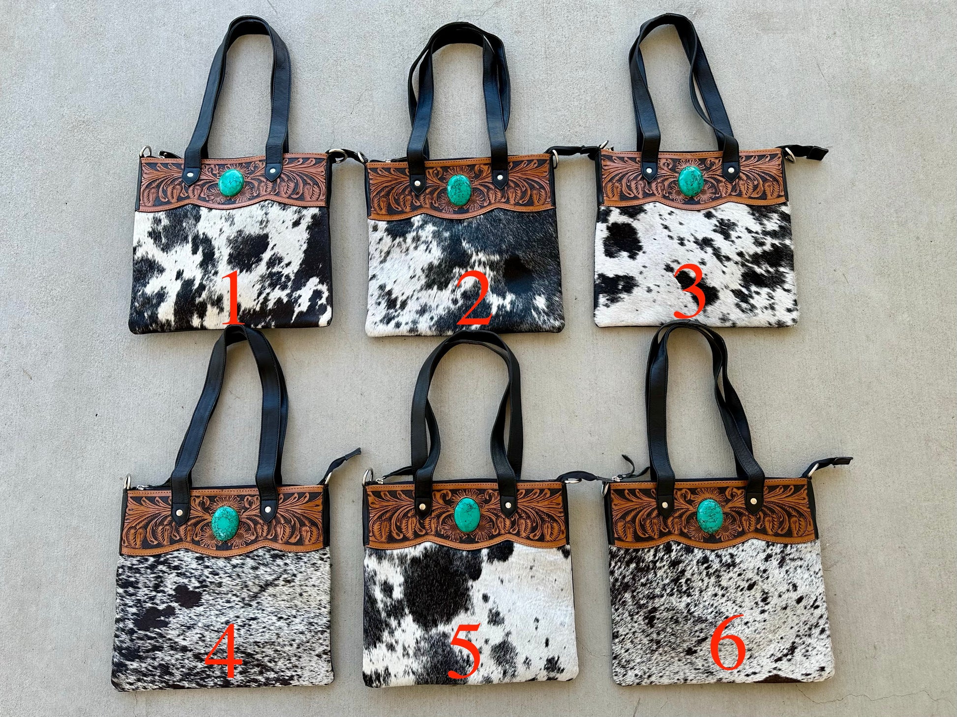 Introducing the Cowhide Tooled Leather Shoulder / Crossbody Bag- Isla, a chic and stylish addition to your western fashion collection. Made of high-quality cowhide leather, this shoulder / messenger bag is both durable and fashionable. With a crossbody strap, you can carry it with ease and comfort. The tooled leather detail and turquoise accents add a touch of western flair to your outfit. Elevate your look and add the Cowhide Tooled Leather Crossbody Purse - Isla to your wardrobe today.