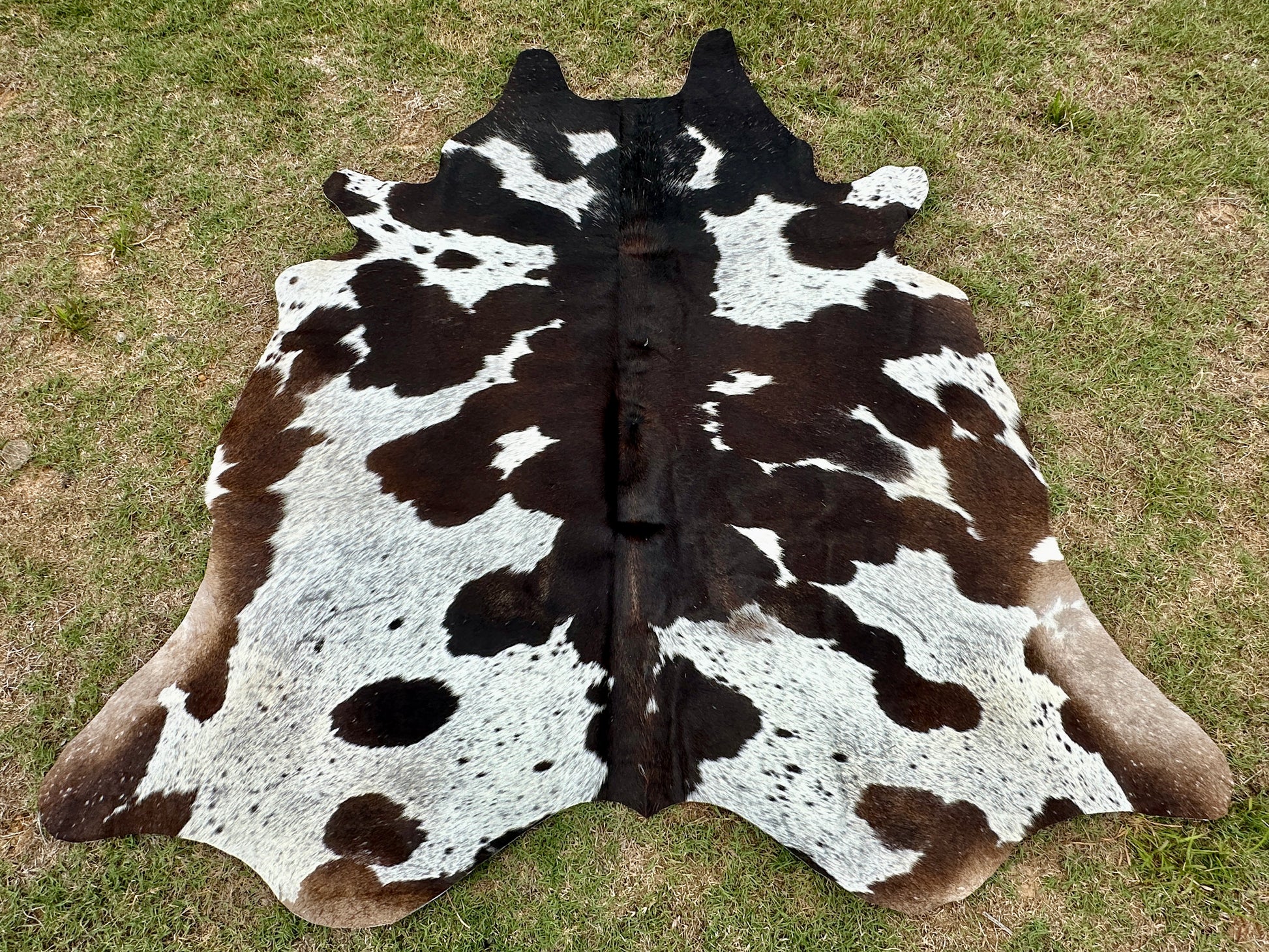 Large Cowhide Rug Tricolor Brown Western Rodeo Decor 5 x 6 ft