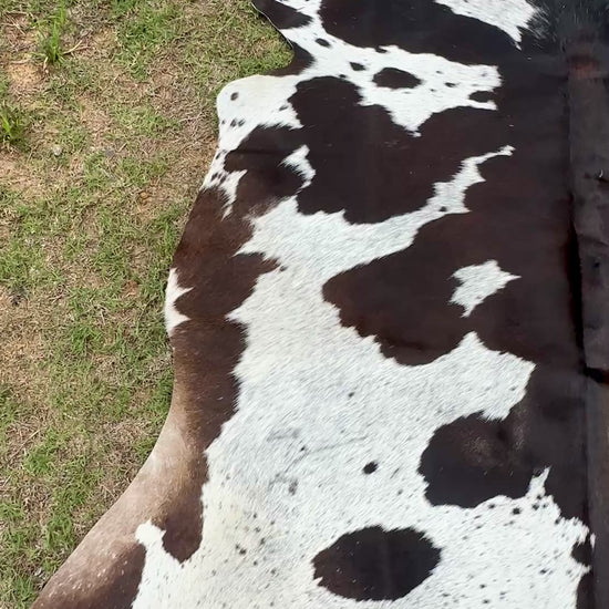Elevate your space with this large 5 x 6 ft tricolor brown cowhide rug, blending natural Western charm with refined elegance. Its rich hues and unique pattern add warmth and texture, making it a striking centerpiece for any room. Perfect for enhancing rodeo-inspired or rustic decor with a sophisticated touch.