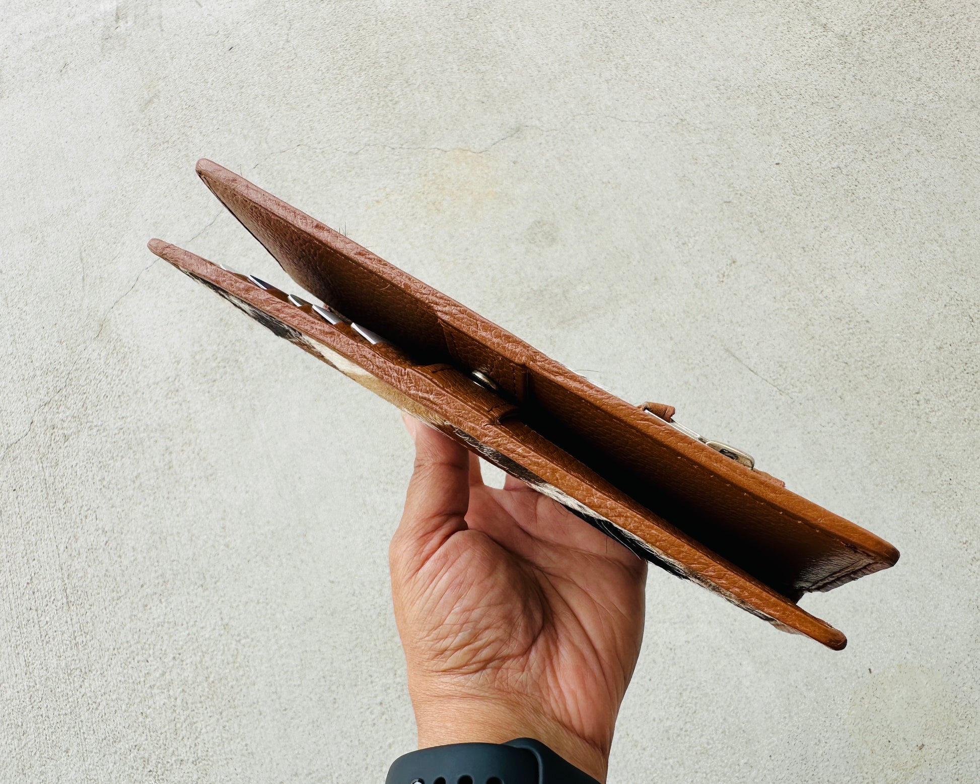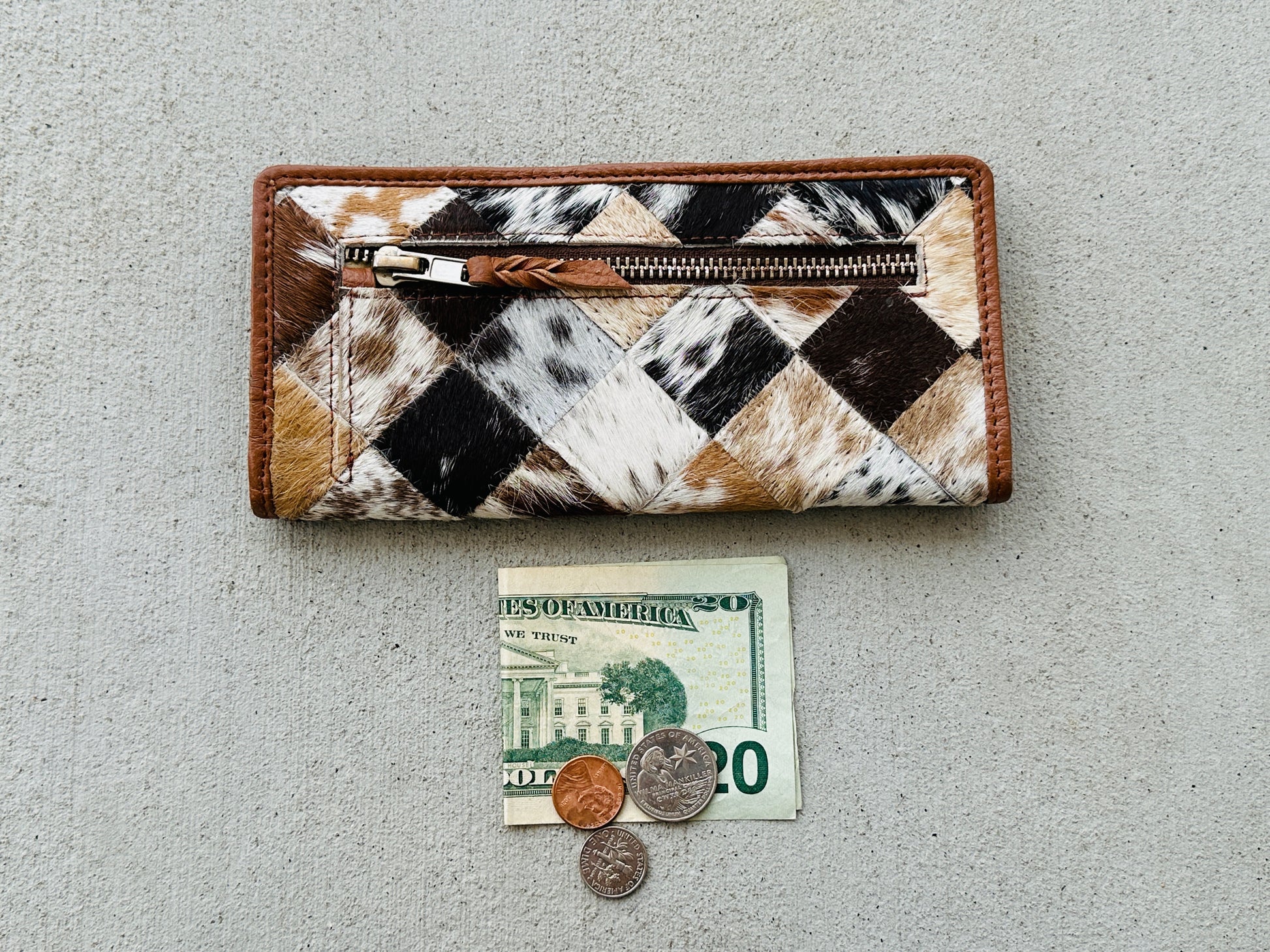 This playful tan cowhide leather wallet combines rodeo spirit with chic patchwork design, perfect for women who love a slim, stylish accessory. Lightweight and compact, it fits easily in your pocket or purse while keeping your essentials organized with a western flair. Add a touch of fun and rustic charm to your everyday carry with Della’s unique wallet!