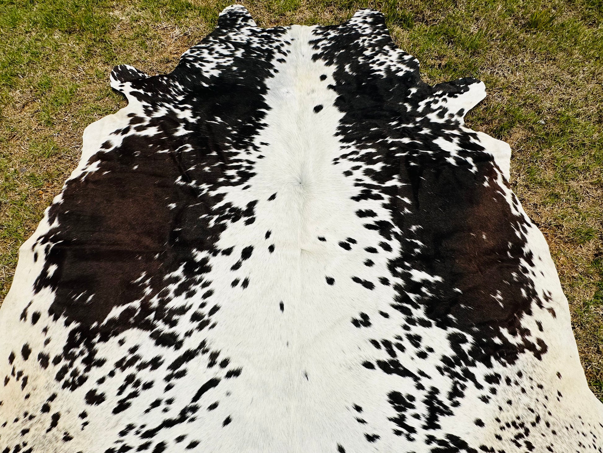 Elevate your space with this large 5 x 6 ft tricolor brown cowhide rug, blending natural Western charm with refined elegance. Its rich hues and unique pattern add warmth and texture, making it a striking centerpiece for any room. Perfect for enhancing rodeo-inspired or rustic decor with a sophisticated touch.